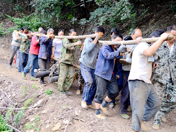 目前,陜西小秦嶺金礦田已全面進入深部探礦階段,隨著找礦突破戰略行動的深入推進,第六地質隊工勘人將以更加豪邁的熱情投入工作,向著更高的技術高度邁進,為小秦嶺這片熱土描繪更加美好的藍圖。圖①為鉆機施工人員在搬運設備。圖②為專家組在進行野外驗收。