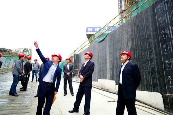 在陜西工勘院空港新城旭生國際文化展示中心項目施工現場,趙廷周詳細了解了項目的進展情況,對陜西工勘院充分發揮傳統產業優勢和技術優勢,積極謀劃向民生地質領域轉型所取得的成績給予充分肯定,對一線員工冒雨推進項目實施給予高度贊譽。趙廷周說,在傳統產業的轉型升級方面,陜西工勘院為集團公司所屬基層單位做出了榜樣,樹立了標桿,值得大家借鑒學習。