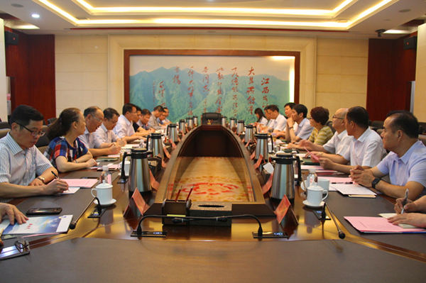 6月4日,地礦集團(tuán)公司黨委書記、董事長趙廷周前往江西省地礦局調(diào)研交流工作。集團(tuán)公司副總經(jīng)理何淑萍,黨委委員、副總經(jīng)理,漢源玉業(yè)有限公司黨委書記、董事長荊平一同前往。江西省地礦局黨委書記、局長苗壯與趙廷周進(jìn)行了充分交流,黨委委員、副局長余忠珍主持召開座談會,黨委委員、副局長陶小駒陪同參觀江西省地質(zhì)博物館并一同座談。江西省地礦局,集團(tuán)公司有關(guān)單位、部門負(fù)責(zé)人參加座談會。