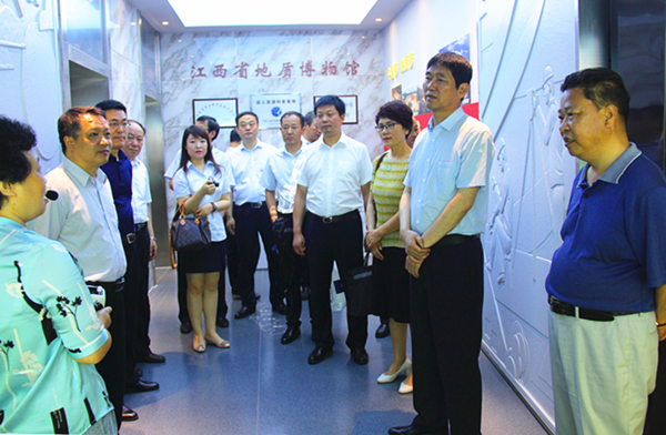 趙廷周向江西省地礦局介紹了陜西地勘單位改革的相關(guān)政策、集團(tuán)公司基本情況以及改革發(fā)展歷程,對地礦經(jīng)濟(jì)轉(zhuǎn)型升級“三大發(fā)展戰(zhàn)略”、“三個地礦”發(fā)展目標(biāo),以及漢中玉文化產(chǎn)業(yè)進(jìn)行了重點(diǎn)介紹。他說,江西省地礦局經(jīng)營管理的理念、轉(zhuǎn)型升級的思路、地質(zhì)找礦的成果,及江西省地質(zhì)博物館建設(shè),這些都值得陜西地礦集團(tuán)借鑒學(xué)習(xí)。當(dāng)前,全黨正在開展“不忘初心、牢記使命”主題教育,我們本次到江西來,既是調(diào)研交流工作,也是傳承紅色文化,感悟使命擔(dān)當(dāng),收到了很好的效果。