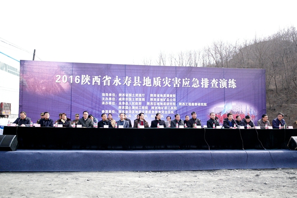 省地質環境監測總站、武警黃金五支隊、咸陽市應急辦、咸陽市國土資源局、永壽縣人民政府、彬縣人民政府有關領導和專家出席并觀摩了應急演練。