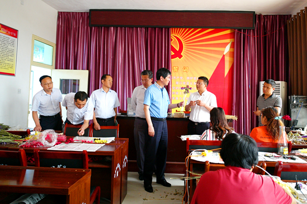 趙廷周現場了解了天度村永生花(干花)和衍紙手工藝項目的技術培訓情況。